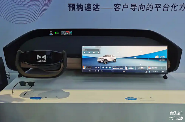 在智能座舱领域,马瑞利展示了ProDisplay产品线的两种新应用形式。其一为集成于车门内饰板后的隐藏式显示屏,采用低反射材质与背景图层技术,可在不工作时保持视觉统一。另一款为超大尺寸中控显示模块,覆盖仪表台至副驾驶区域,满足未来车载娱乐与多屏互动的使用场景。