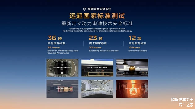 安全性方面,吉利这次下了血本。银河战舰搭载的“神盾金砖电池”通过了36项极限测试,其中23项远超国标,包括电芯针刺、海水浸泡、底部球击等极端工况。最狠的是,它能在30km/h的托底冲击下毫发无损,这在电动车里非常罕见。吉利甚至宣布向全行业开放电池底部安全专利,这格局,确实够大。