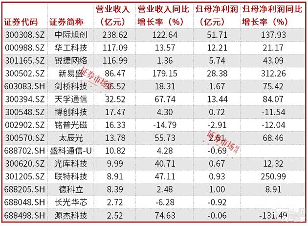 光模块行业整体净利润增长122%