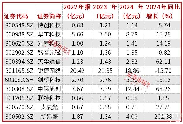 受益人工智能推动的算力产业链急速扩张,光模块概念股在2024年收获了良好成绩。