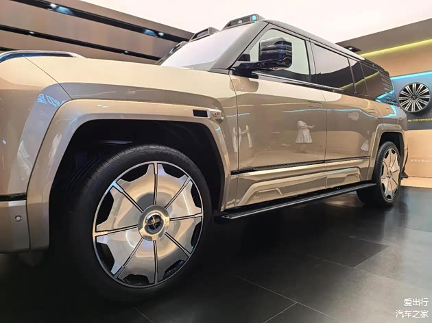 车辆侧面装配的23英寸8孔锻造轮毂,造型大气且极具力量感。轮眉设计简约而不失精致,轮毂内部的仰望车标采用了与劳斯莱斯相似的悬浮式轮毂盖设计,无论车辆处于静止还是行驶状态,车标始终保持指向上方,这一设计不仅美观,更体现了品牌对细节的极致追求。