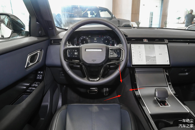 车内的设计层面,路虎揽胜星脉属于简洁的风格,车内用料厚道,大面积的皮料材质,中控屏幕嵌入式,11.4英寸,液晶仪表盘为12.3英寸,车机操作起来还是比较流畅的。比较让人意外的是它不止车机流畅,倒车影像居然也很清晰,说明用的摄像头确实是好货。就是这个摄像头的角度,会看到车牌,还是让人比较无语的。