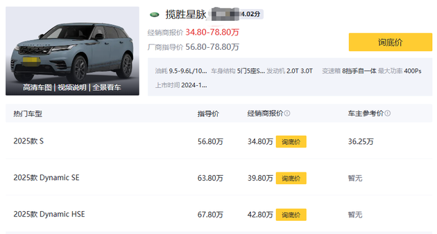 相比起老大哥路虎揽胜, 星脉这台车一直定位就有点尴尬。在百万级的SUV里,揽胜尤其是揽胜加长版几乎没有相同生态位的对手,但在星脉这个定价里,对手却不少,包括宝马X3、奥迪Q5L、奔驰GLC都是强力对手,再加上自己还有兄弟车型捷豹F-PACE参与竞争,搞得星脉这台车日子很难熬。但这台车目前的降价幅度也还可以,笔者所在的成都市经销商报价能降到42万起,而一些城市的降价幅度更大,比如保定这个地方,路虎经销商报价将星脉降到34.8万起,这个价格够意思了不?我们来看看,降幅这么大的路虎揽胜星脉,到底有没有坑会踩!