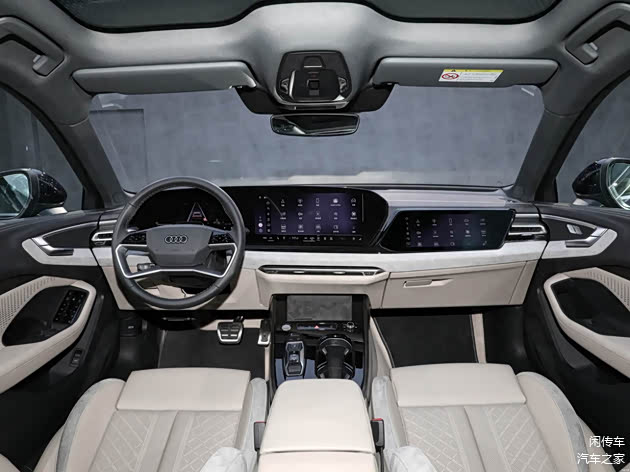 具体来看本次的新一代一汽奥迪A5L车型与海外版本及上汽奥迪兄弟保持相同,前排是双联弧面式大屏,有着特殊的边框包裹,副驾驶侧娱乐屏组成联动,Hud抬头显示进行加持,科技感有着不错的表现,中控台面整体弯折向驾驶侧偏转,增强了运动感,环抱式的结构有着层次感丰富的撞色工艺内饰覆盖,门板处也有着复杂的造型,整体豪华感档次感比上一代车型确实有着大幅的提升。