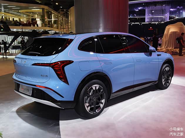 侧面造型方面,车顶带着明显的弧度,线条感显得比较圆润;腰线采用的是分段式设计,点缀出了车身侧面的层次感;门把手采用了弹出式设计,能够起到降低风阻的作用;轮眉和侧裙部分设计有隆起的筋线,凸显了肌肉感;轮毂采用的是双色多幅式造型,风格还算大气。