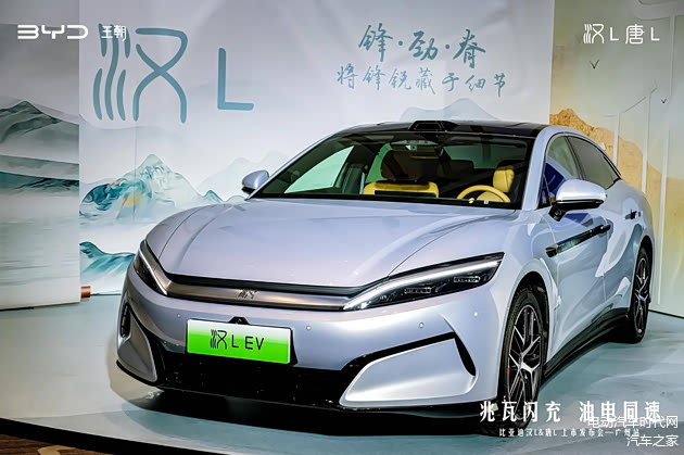 汉L定位为年轻人的第一款旗舰轿车,车身尺寸达到C+级,有纯电和插混两种动力,4种外观颜色和2种内饰配色。新车全系标配智能底盘、DiLink 150高阶智舱,全系标配激光雷达,搭载比亚迪天神之眼B智能驾驶辅助系统。特别是,汉L EV拥有10C超充,1000kW全球最大充电功率,真的做到了兆瓦闪充,油电同速,闪充5分钟续航400km。
