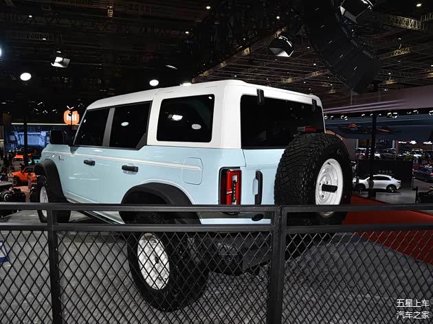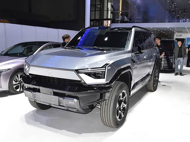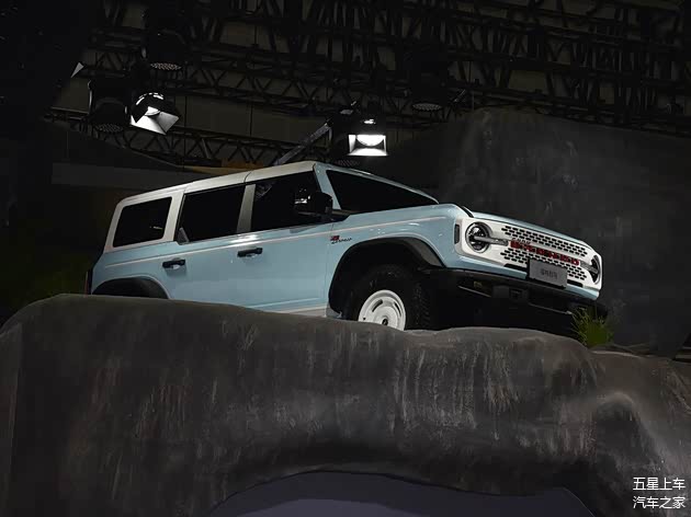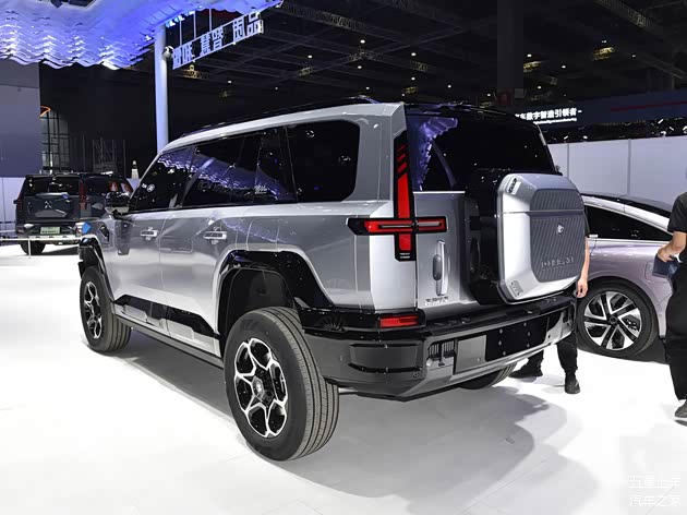 福特烈马复古特别版以“时光穿越”为主题,知更鸟蛋蓝车身搭配白色模块化硬顶,车身侧面贯穿的白色细条纹与17英寸复古轮毂形成视觉锚点,前格栅复刻初代车型的白色网格设计,红色“BRONCO”标识与3D徽标强化身份认同。这种设计既保留了初代车型的经典轮廓,又通过LED灯带与矩阵式大灯组融入现代科技元素,形成独特的“复古未来主义”风格。猛士M817则以“未来战甲”为设计语言,雄魂美学2.0设计语言赋予其机甲般的立体轮廓。车头采用发光LOGO与止戈为武2.0大灯组,搭配银色越野保险杠;车顶行李架与侧梯强化功能属性,298颗超红LED尾灯搭配激光雕刻工艺,尾门“小书包”与悬浮梯设计凸显实用主义。坦克300虎克版走“机能暴风”路线,沙漠黄涂装与无漆处理部件构成粗犷基底,钢制侧踏板与防脱圈轮辋直指硬核场景。前翼子板新增的通风口格栅不仅优化散热,更成为视觉焦点,整车线条如刀刻斧凿,传递出“为征服荒野而生”的纯粹感。