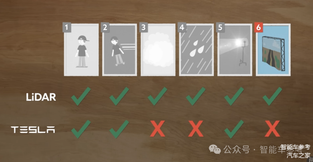 视频中,Rober分别针对强光、大雾、道路中突然出现儿童等极端场景,设计了6个测试项目,让带有美国Luminar激光雷达的车辆和特斯拉一同测试。