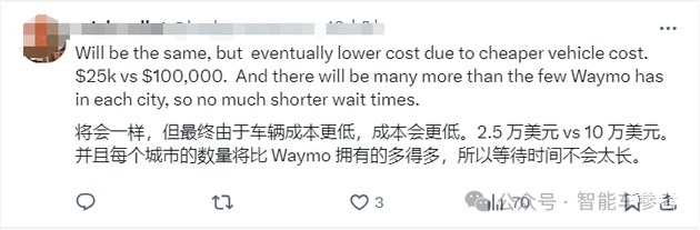 一方面在于成本,特斯拉的成本只有Waymo的四分之一。