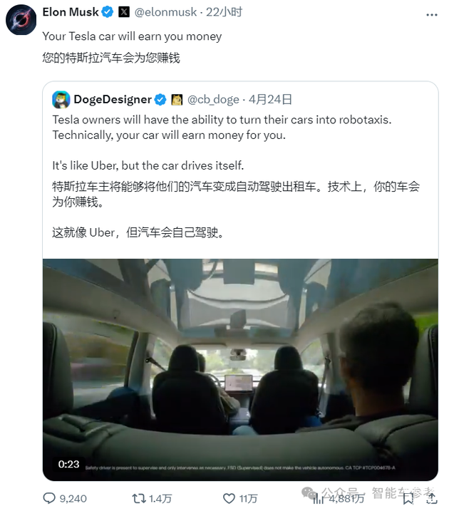 特斯拉在X平台上公布了这一消息,并附上了一段宣传视频: