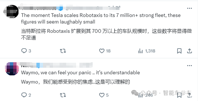 评论里还有看了特斯拉宣传片的网友调侃,Waymo感到焦虑也很正常:
