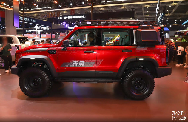 外观内饰设计确实是全新赤兔版本的一大亮点,车外全部采用了红色涂装非常吸引眼球,而且前面已经提到加装了不少专业的越野改装套件,买到手就可以进行一些高强度的专业越野。包括尾部也提供了高强度轮毂以及全尺寸大花纹越野轮胎。
