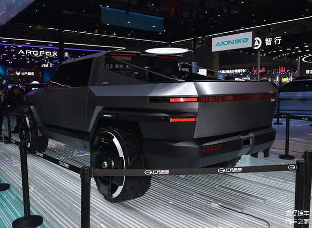 广汽集团展台有昊铂品牌的Earth大地概念车和一款PICKUP 01概念皮卡。Earth大地是一款猎装风格的概念车,采用了昊铂品牌的新设计理念,内部为四座布局,计划于2026年量产。PICKUP 01则属于商用车板块,展示了新能源皮卡的设计方向,并提及了弹匣电池技术。