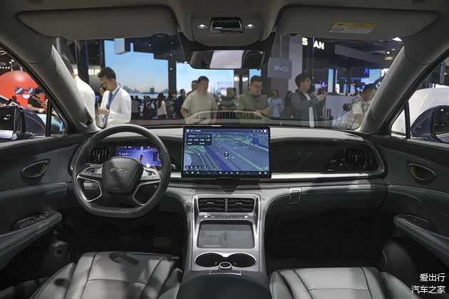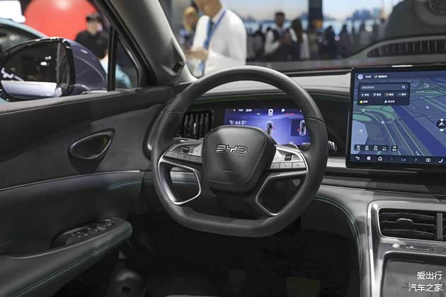 内饰设计以"海洋律动"为主题,中控台顶部模拟海浪起伏的弧形线条,搭配哑光黑饰板与金属拉丝面板,营造出层次分明的科技氛围。10.25英寸全液晶仪表与15.6英寸自适应旋转中控屏组成双核交互界面,内置DiLink 5.0智能网联系统,支持5G车联网、整车OTA远程升级、四音区语音交互及连续指令识别。应用商店覆盖主流影音娱乐软件,可实现车内观影、短视频浏览及在线音乐播放。