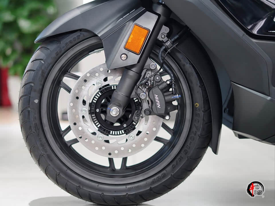 33mm正立前叉+预载可调后减震,标配双通道ABS+TCS,制动线性可靠。