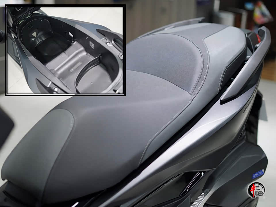 保留48L座桶(可放两顶全盔)+电动风挡,新增座桶感应灯,细节优化。