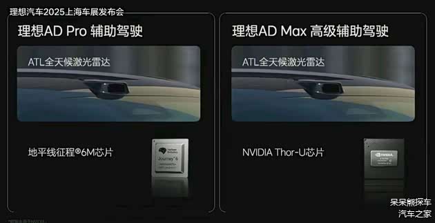 2025款L6的智能驾驶升级,新增城市NOA功能,支持收费站通行、代客泊车等复杂场景。在VLA大模型加持下,系统可识别施工锥桶、三轮车等长尾场景,夜间AEB刹停距离缩短至同级最短。其中AD Max版搭载英伟达Thor-U芯片(算力500TOPS),激光雷达体积缩小60%,支持全场景NOA。AD Pro版换装地平线征程6M芯片(算力256TOPS),主动安全能力看齐Max版。