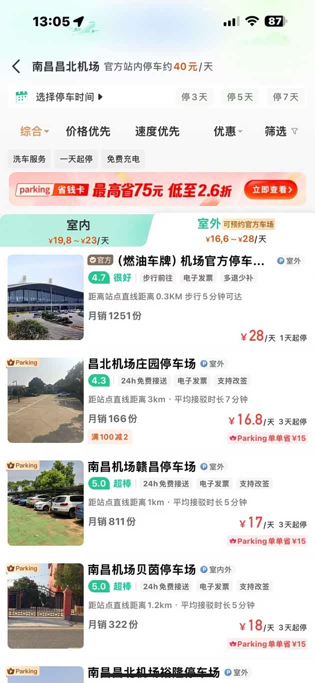 常去南昌昌北机场的车主注意了!机场官方停车场日收费高达60元,长期停车成本令人咋舌。现在通过小强停车平台预约周边停车场,即可解锁超值优惠:机场官方停车场单日低至28元,周边优质停车场更享16元/天起的优惠价格!这些停车场不仅价格友好,服务更显贴心:24小时免费接驳车无缝衔接航站楼,无论早班机还是红眼航班,均提供专属接送服务,彻底告别拖着行李奔波的尴尬。全程线上预约、一键导航直达,停车费直降70%的同时,更省去转乘烦恼,轻松实现“省时、省钱、省心”三重出行自由。您只需微信搜索【小强停车】在上面查看附近停车场,即可轻松预约周边的停车场,且输入邀请码“58”,还可领取38元停车抵扣券!