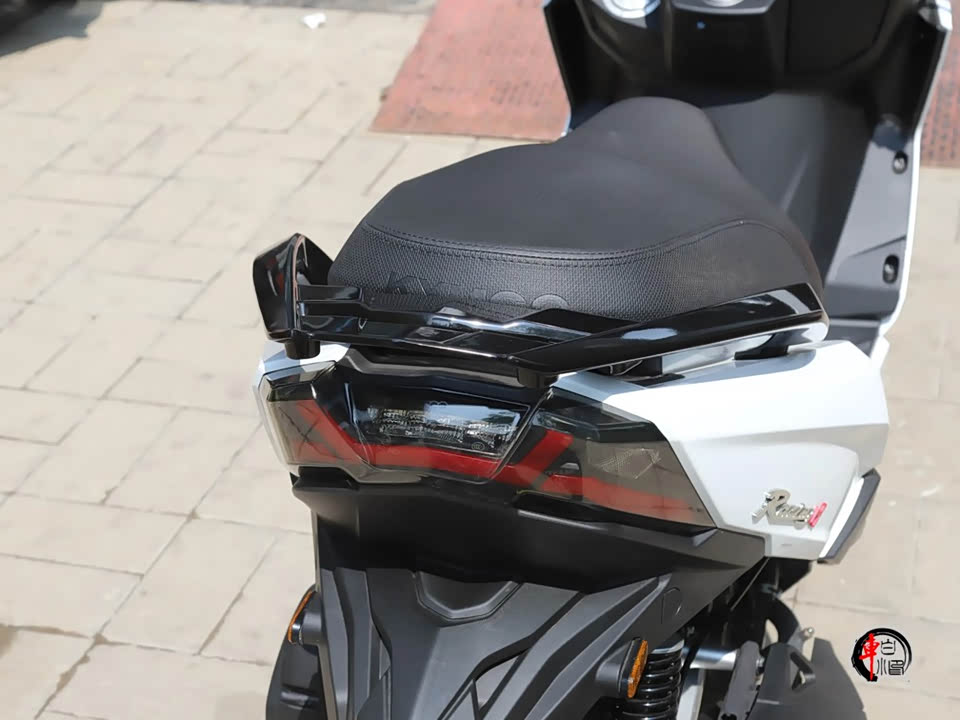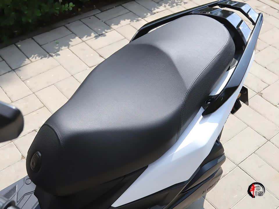车身采用纯平踏板设计,长宽高为1910×720×1130mm,轴距1340mm。整备质量143kg,比龙骨版轻5kg。座桶可容纳3/4头盔,配备前置物箱和隐藏式挂钩。7.8L油箱容量满足日常通勤需求。