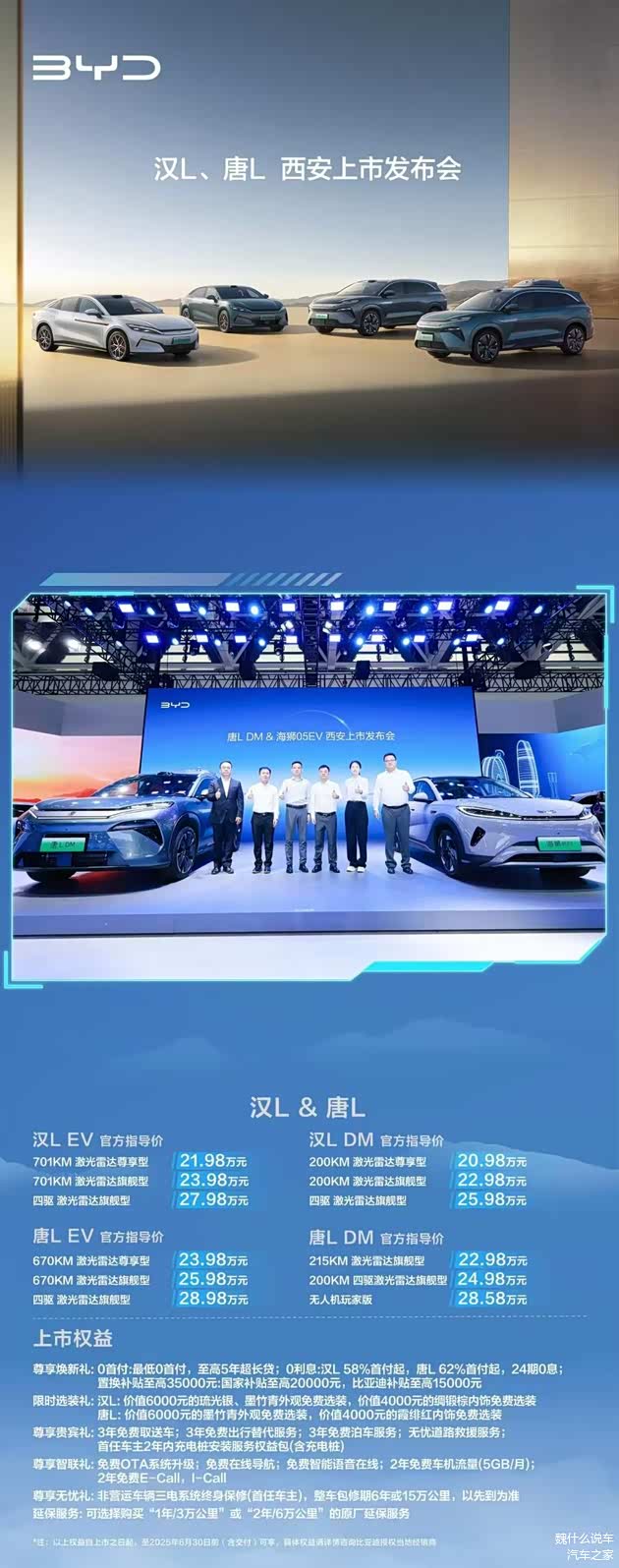 比亚迪汉L唐 L及海狮05EV、海狮07DM-i的上市,不仅为西安消费者提供了高品质的购车选择,更以领先技术重塑了汽车市场标杆。它们是比亚迪面向未来的诚意之作,势必在全球汽车市场掀起中国智造的浪潮,开启汽车工业下一个纪元。