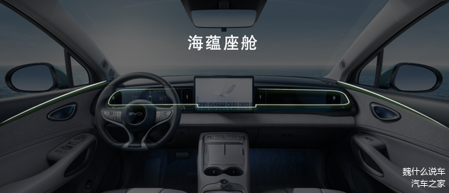 内饰延续海洋美学风格特点,主仪表台采用对称式布局,横贯整个仪表台的黑色面板,嵌入8.8英寸全液晶仪表与12.8英寸悬浮Pad形成层叠式搭配,层次感更丰富。