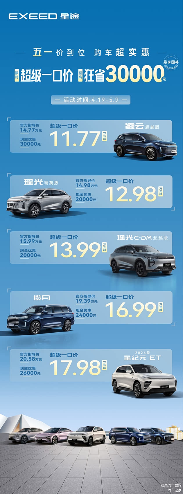 作为中国品牌高端化的代表之一,星途诚意满满,4月19日起至5月9日,星途汽车多款重磅车型开启促销模式,其中凌云超越版推出限时超级一口价活动,现金优惠30000元,一口价仅需11.77万元,更可额外享受国补优惠。这一超值价格不仅让凌云超越版在同级市场中性价比优势凸显,更以四大越级价值标杆,为消费者带来远超期待的用车体验。如果你正打算选购一款兼具性能、安全、舒适与智能的高品质SUV,那么这次难得的购车良机不容错过。