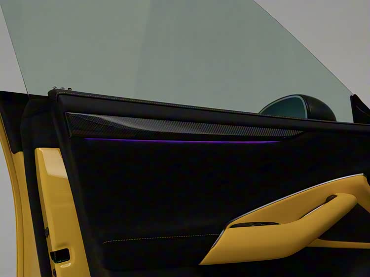 车内配置包括7.1英寸液晶仪表和16.1英寸中控屏。其他配置有双50瓦无线充电、25扬声器音响系统以及前排座椅按摩功能。多处细节可选装碳纤维装饰。