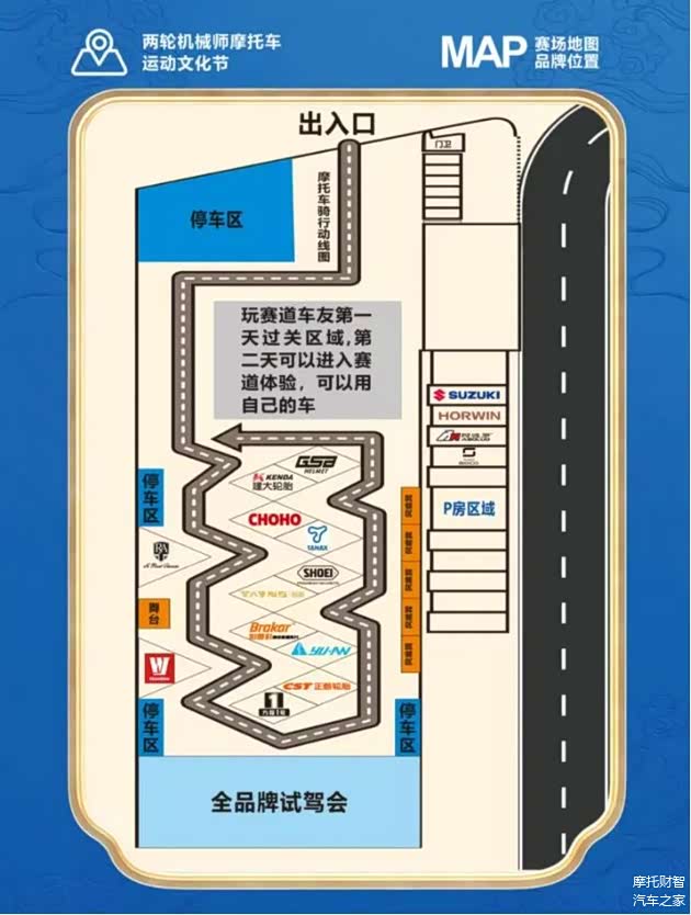 活动现场厂商汇聚:GSB头盔 ,shoei头盔,TANAX后视镜箱包,钛斯锻造轮毂,铂雷科刹车片,方程一号机油,建大轮胎,正新轮胎,征和链条,渝安减震,豪爵,速珂电动摩托车,阿波罗电动越野摩托车,浩万电动摩托车,铃木等各大厂商也将亲临现场,设立车辆试驾专区。更有众多整车、部品、配件等品牌经销商参展。在报名时,你可前往中意的品牌,现场不仅能学到实用的更换技巧,还能实操体验,更有机会赢取丰厚礼品。车手们还会逐个品牌与大家分享使用感,让你更深入地了解产品,现场扫货优惠多多。