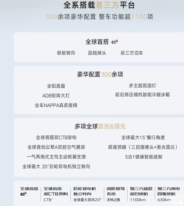 其实,相比直接套用三电机,腾势Z7其实不用做这么强的性能输出,完全可以跟汉L提供500kW后驱版来拉低门槛价,将价格控制在25万以内。再以易三方平台的后轮转向、圆规掉头、蟹行等黑科技来与汉L做出差异化,在25万级价位市场打造出独一无二的驾驶体验,自然也会取得不菲的订单,若是权益再给力一点,成为爆款不难。现在就看,腾势Z7的最终定价会是多少?