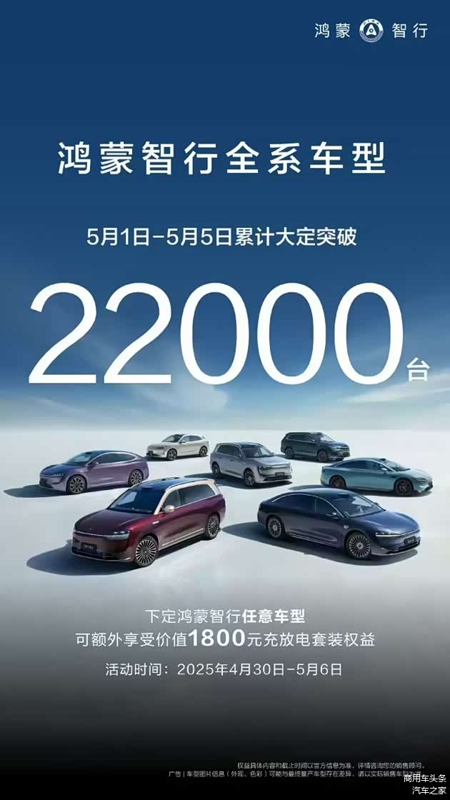 ▎鸿蒙智行全系车型5月1日-5日大定突破22000台