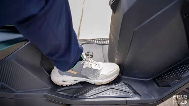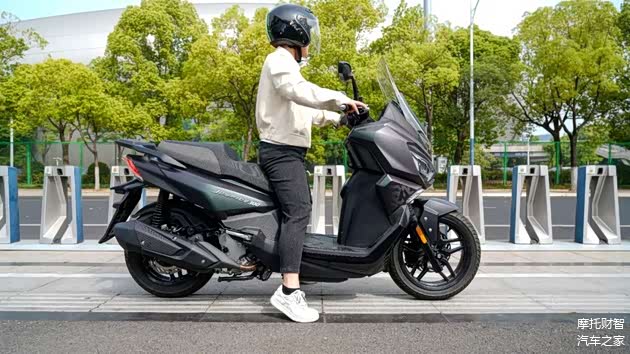 值得一提的是行者300具有同级少有的短轴距,仅为1490mm,要比主打旅行的S250(轴距1550mm),主打运动化操控的SR MAX250(轴距1520mm)还要短,短轴距的好处不言自明,大大提升整车的刚性,避免传统踏板中高速过弯车尾的拖拽感,大幅提升操控,这也是行者300的一大亮点。但由此也导致平踏的尺寸较短,目测与一般的150踏板基本一致。