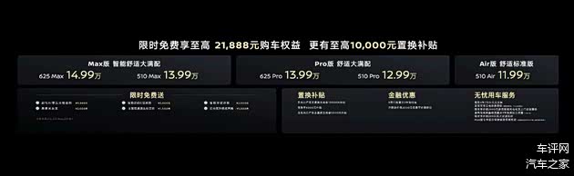 起售价11.99万的510Air版,全系唯一11万级车型,行业首创的全域智能防晕车技术,基础配置齐全(如倒车影像、LED大灯),续航足够日常通勤(540km),相比同价位竞品多停留在够用层面,N7 Air版以独家舒适技术形成差异化,尤其适合易晕车的家庭,适合预算有限、注重实用性的家庭用户。