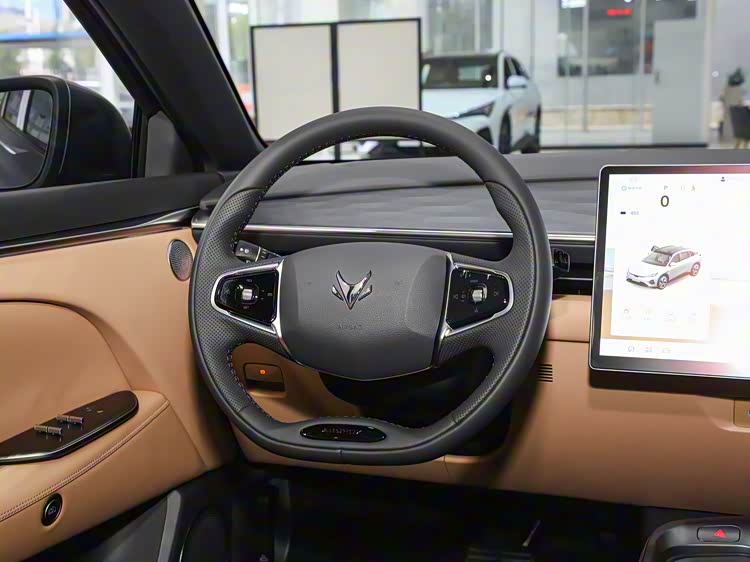 车身侧面通过悬浮式车顶和隐藏式门把手营造科技感,红色刹车卡钳与熏黑轮毂的组合偏向运动化取向。尺寸参数显示,其2845mm的轴距在同级车型中处于中上水准,1936mm的车宽则为车内横向空间提供了保障。底盘结构采用后多连杆独立悬架,电池组底部设有防护装置。