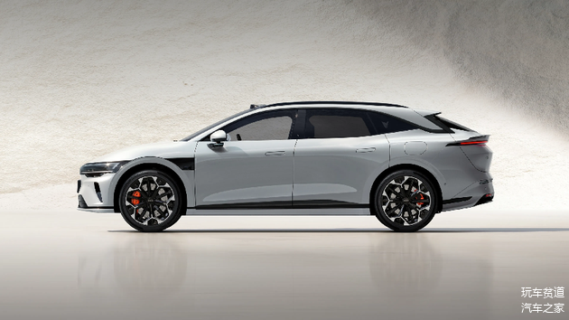车身侧面线条流畅,车顶从C柱向后延伸,形成猎装车的溜背式造型。采用隐藏式门把手设计,车辆解锁时自动弹出,这种设计在一定程度上提升了车身外观的整体性,并且有助于降低风阻。全新的保险杠样式,在传统的雾灯位置设有两个真实的导风槽,在牌照框下方还多加了主动开闭的格栅,闭合状态可以降低风阻,开启又可以给电池电机散热。车尾造型饱满,配备分段式扰流板,贯穿式尾灯运用SuperRed超红光技术,穿透效果较强。上方的黑色小鸭尾与车顶扰流板组成双层尾翼,对车辆的空气动力学性能有一定提升作用,可降低高速行驶时的风阻,风阻系数优化至0.23Cd。