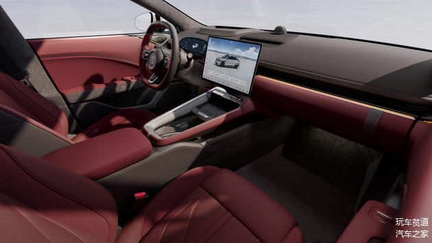 车内标配13.02英寸全液晶曲面仪表和AR-HUD抬头显示,搭配15.4英寸2.5KOLED向日葵中控屏,该中控屏可三向转动,以适应不同使用场景。内饰采用双拼配色方案。配备上下平直造型的三辐式多功能方向盘,12点位置有明显对中标识。前排座椅靠背支持外接Pad互联,后排座椅中间设有雪橇洞,方便拿取后备厢物品。后备厢下沉空间配备冰箱。车内使用1.42㎡仿麂皮面料拼接座椅,顶棚与B柱采用超纤绒包裹,13°倾角TOSA扶手设计,设有物理按键。