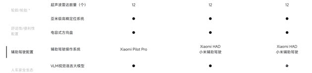 如小米SU7 Pro/Max,其搭载的Xiaomi HAD(小米智驾Max)改为“小米端到端辅助驾驶”, 小米SU7标准版搭载的Xiaomi Pilot Pro(小米智驾Pro),改为“小米辅助驾驶Pro”。