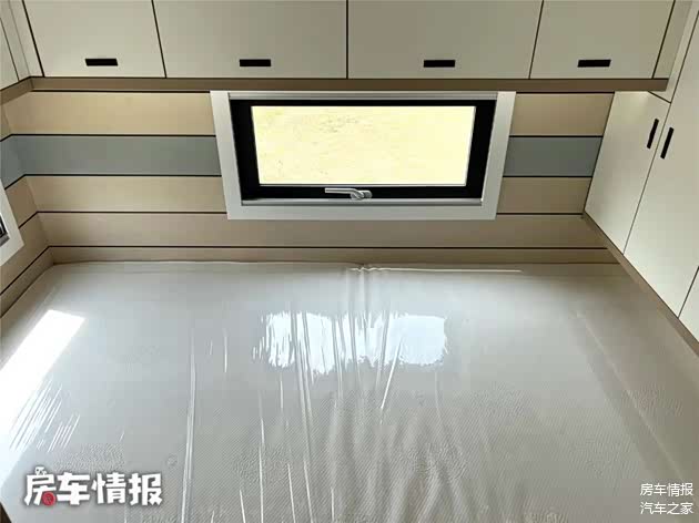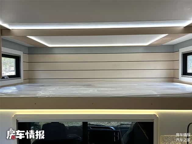 在休息空间方面,车内提供了两张独立床铺,形成一个类似两室一厅的格局。前方驾驶室顶部是一张尺寸约为 2100*960 毫米的单人床,后方则是一张尺寸约为 2100*1300 毫米的横置双人床,能够满足一家三口的休息需求。如果车内有第四位乘客,还可以将客厅餐桌拼成一张单人床,灵活多变的空间布局为不同人数的旅行提供了便利。