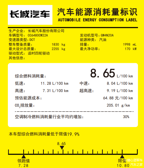 动力方面,此前的申报资料显示,哈弗猛龙燃油版采用2.0T发动机,最大功率175kw、最大扭矩385Nm,匹配9挡湿式双离合变速箱,并配备适时四驱系统。燃油经济性方面,新车的百公里综合油耗为8.65L,低速百公里油耗11.28L,中速8.04L,高速7.31L,超高速为9.19L,达到同级别车型的主流水平。
