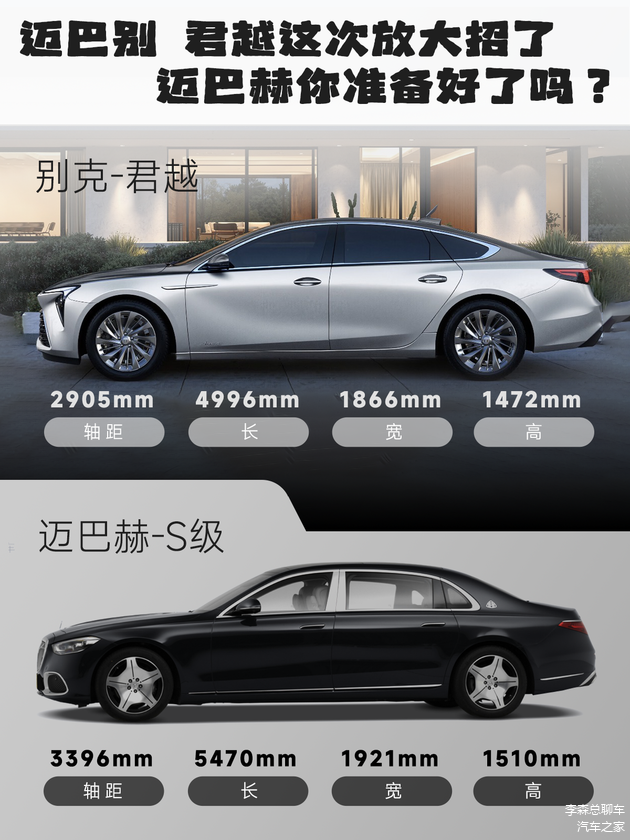 说实话,别克君越在改装件的加持下,这迈巴别的豪华感,完全不亚于迈巴赫。而且别克君越的⻋⾝尺⼨,内饰设计,发动机、变速箱等等也都是对标的豪华⻋。懂车的朋友应该都知道,B级车的轴距应该是小于2.9米,但是君越的轴距却达到2905mm。