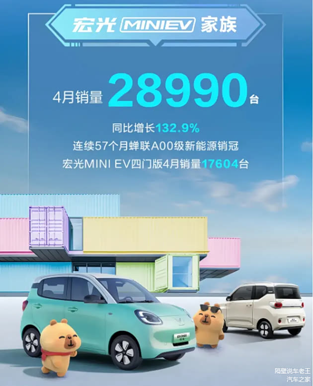 我是隔壁老王,今天咱们好好唠唠这台国民神车五菱宏光MINI EV。要说现在马路上什么小车最抢眼,那必须是这个长得像方糖似的电动小精灵。上个月又卖了将近两万九千台,这已经是连续57个月当销冠了,你们说吓人不吓人?我老王在汽修铺子干了二十年,见过不少风靡一时的车型,但像这样持续火爆的还真是头一遭。