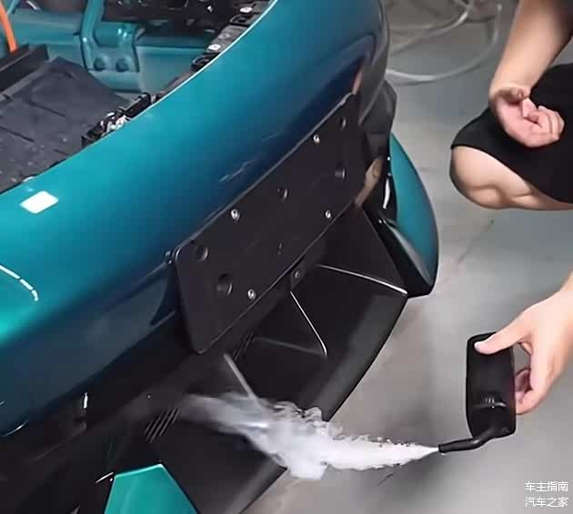 然而有博主拆解车辆后发现,小米SU7 Ultra挖孔机盖版的前机盖内部结构与普通版是完全一样的,在车头的风道处喷“可视化烟雾”发现机盖处没有任何动静,往机盖处盖上一张纸巾,用鼓风机往风道里吹,机盖处的纸巾也是纹丝不动,由此大家判断小米SU7 Ultra挖孔版是不具备贯穿风道的。