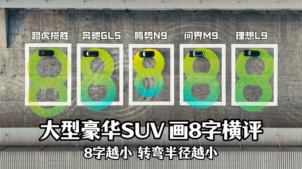 五辆大型SUV画8字对比,看看哪一台更强?大型SUV最怕转弯卡壳?腾势N9凭借 “易三方技术 ”,直接让后轮能反向转动(±10°),愣是把5米2的大家伙转弯半径压到4.65米!实测画8字一把过不压线,窄路掉头、地库挪车不用来回倒,后轮和前轮反向配合,双电机控速,轴距再长也能灵活钻巷子。一句话:开这车,大块头也能有“小身段”!