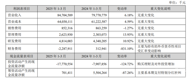 再看国轩高科,该公司2025年第一季度实现营业收入90.55亿元,同比增长20.61%;归母净利润1.01亿元,同比增长45.55%。同期内的研发费用为4.84亿元,同比增长11.82%。