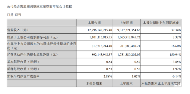 财报数据显示,2025年第一季度,亿纬锂能实现营业收入127.96亿元,同比增长37.34%;归母净利润11.01亿元,同比增长3.32%。