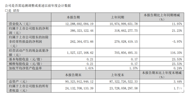 根据财报数据,欣旺达2025年一季度实现营业收入122.89亿元,同比增长11.97%;净利润3.86亿元,同比增长21.23%。