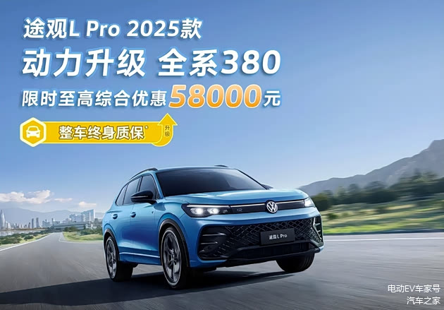 5月6日,2025款途观L Pro一上市,直接给20-30万级合资SUV市场扔了颗“智能炸弹”,全系380TSI高功发动机起步,带着5.8万综合优惠杀进市场,还甩出“整车终身质保”的王炸底牌。