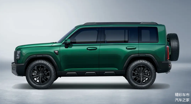 车身长/宽/高尺寸和插电混动版大体一致。车身侧面采用大量平直的线条设计,结合熏黑轮眉组件以及铆钉装饰和熏黑轮圈,硬汉气息十足。另外还提供了18和19英寸两种熏黑轮圈和三种规格的轮胎(245/55 R19、265/60 R18和255/60 R19)可选,提升了视觉冲击力。