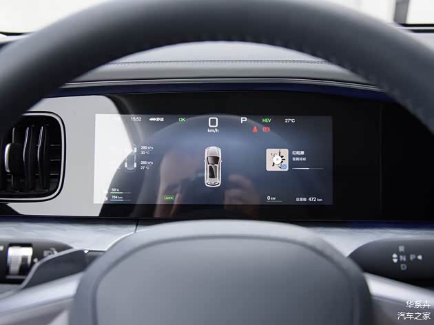 仪表盘设计简洁,显示信息明了,中间区域看起来有些空洞,开启了智驾,就会好很多了。