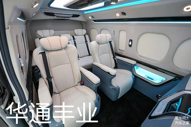 车内采用了 2+2+3 的座椅布局,科学合理且舒适便捷。第二排的航空级独立座椅支持多角度调节及腿托功能,乘客可以根据自身的需求找到最舒适的坐姿。不仅如此,还配备了 USB 充电接口与独立空调控制面板,为乘客打造了专属的舒适区。