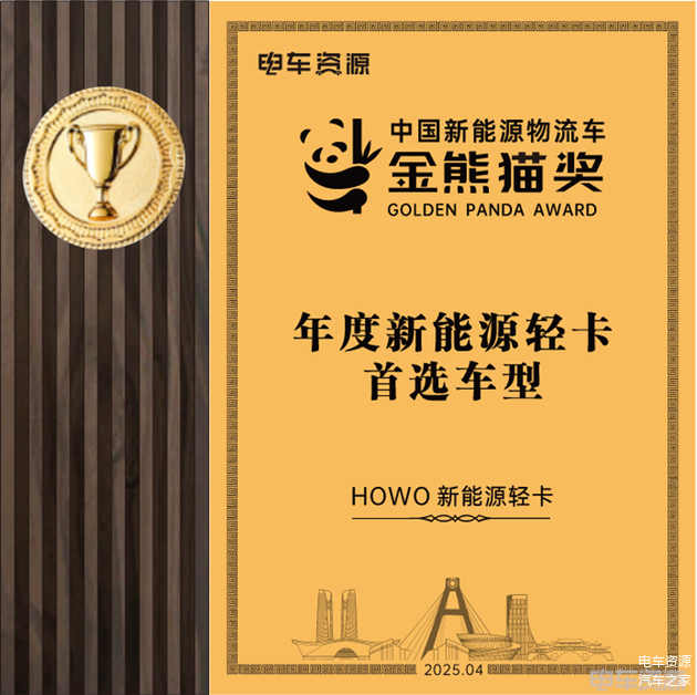 近日,由电车资源、绿色重卡联合主办的“2025第八届中国新能源商用车产业大会暨第九届中国新能源物流车金熊猫奖&绿卡奖颁奖盛典”在成都圆满落幕。作为轻卡行业商用车的龙头企业,中国重汽集团HOWO轻卡新能源产品(简称“HOWO轻卡新能源”,下同)凭自主创新技术、可靠品质与全面服务赢得市场认可,HOWO轻卡系列亮相会场,斩获“年度新能源轻卡首选车型”大奖。